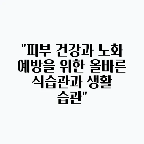 이제 여러분은 피부 건강과 노화 예방을 위한 올바른 식습관과 생활 습관에 대해 잘 이해하셨을 것입니다. 건강한 피부를 원한다면 위의 내용들을 다양하게 실천해 보세요. 올바른 식습관과 생활 습관이 누적되어, 여러분의 피부는 건강하고 활기차게 변화할 수 있을 것입니다. 결국, 건강한 피부는 삶의 질을 향상시키는 지름길입니다.